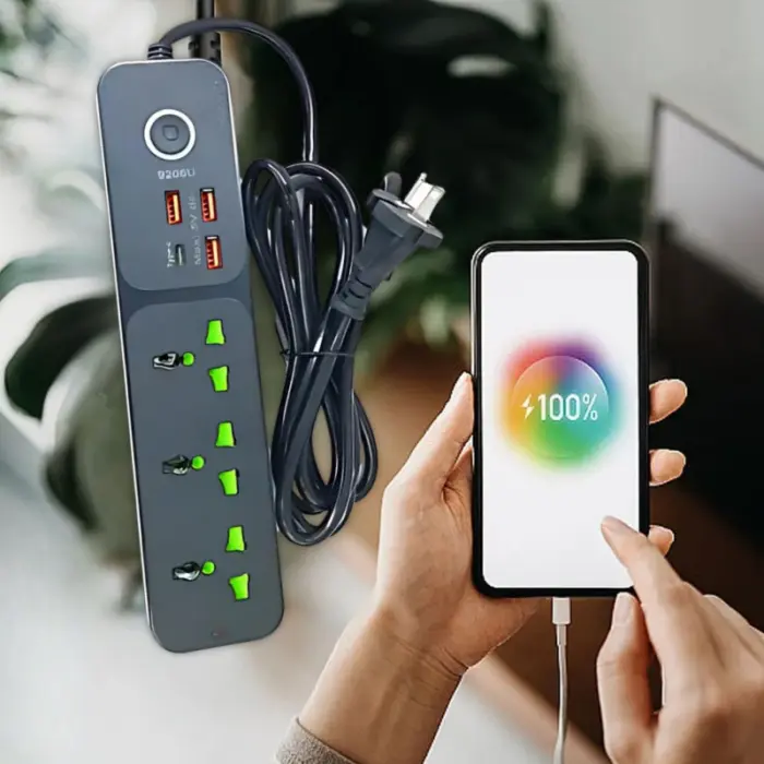 Zapatilla Prolongadora con 3 Tomas + 3 Puertos USB + 1 Tipo C – Color Surtido